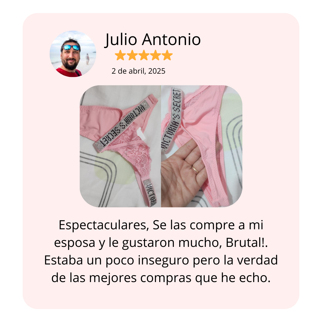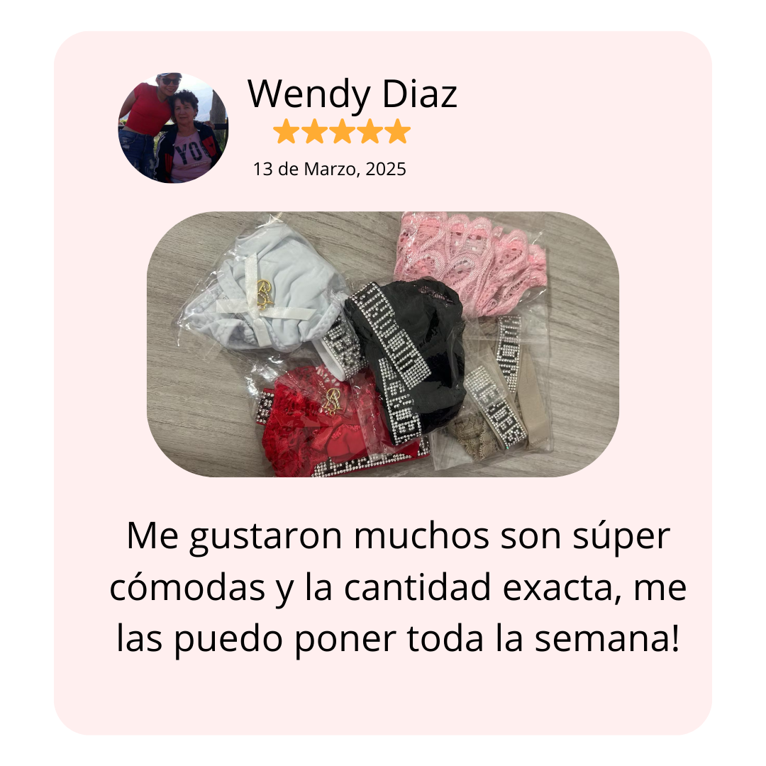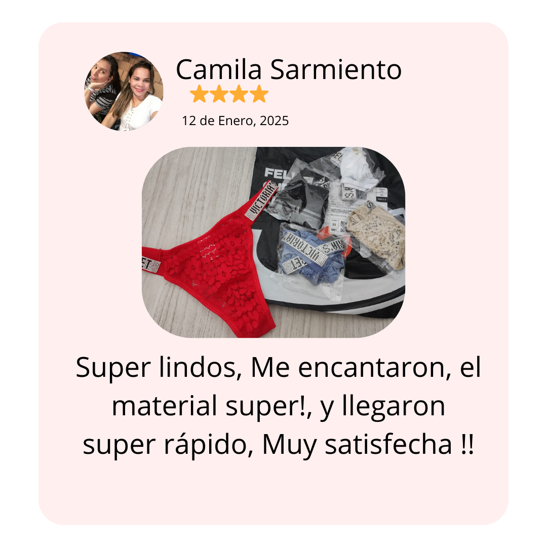 Nuestros materiales son premium y resistentes ✨. El encaje es suave, no pica y soporta lavadas sin perder forma. Los detalles brillantes están diseñados para durar sin desprenderse fácilmente.