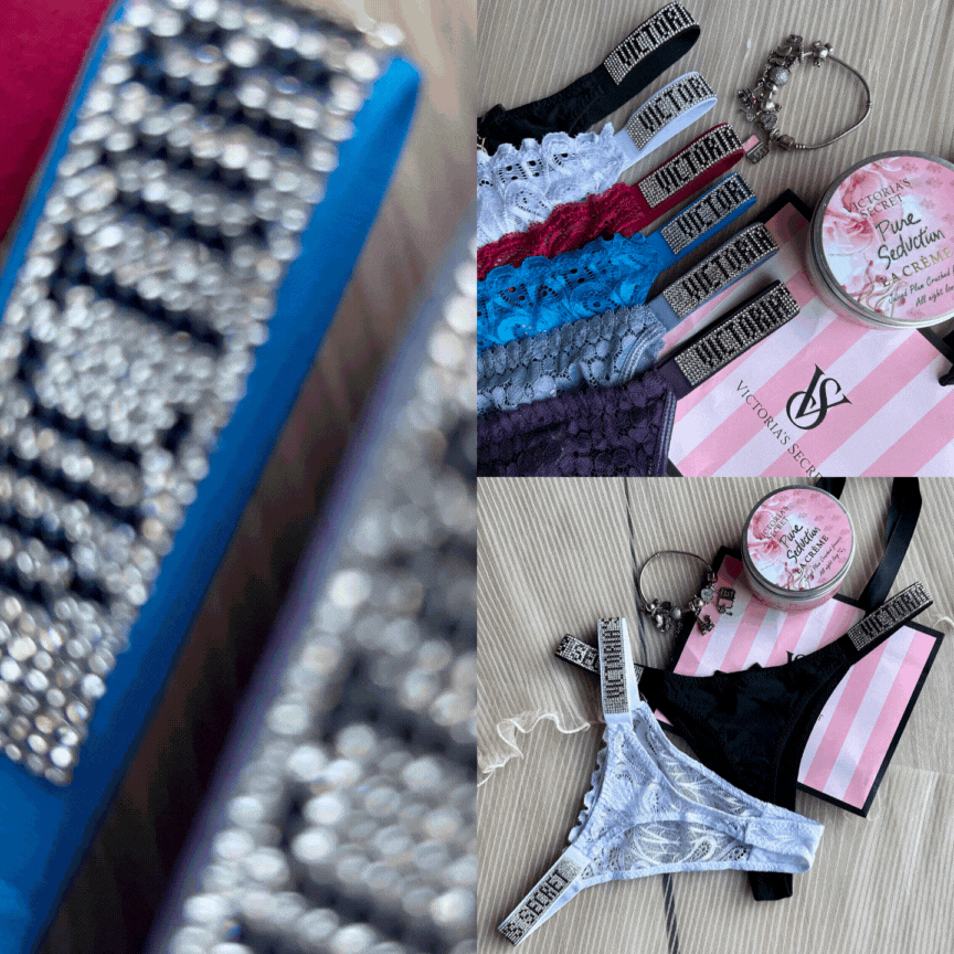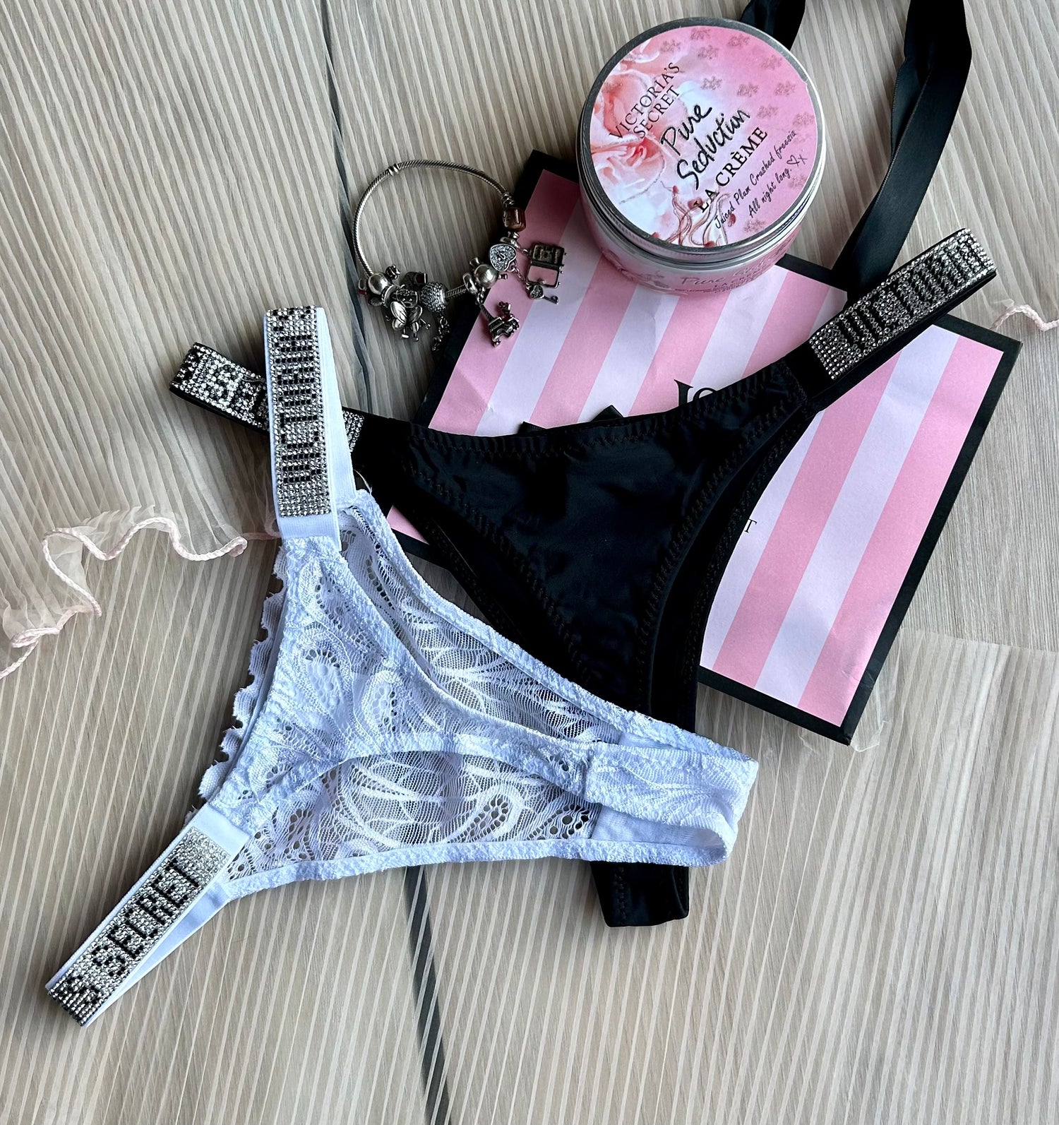 Tangas de encaje y seda fría con detalles tipo diamante laterales — (VICTORIA'S SECRET)💎